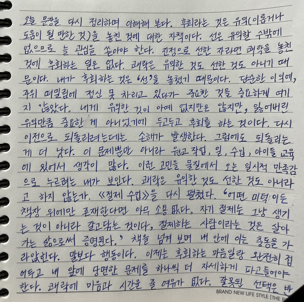 내가 후회하는 것은 ‘선’을 놓쳤기 때문이다.