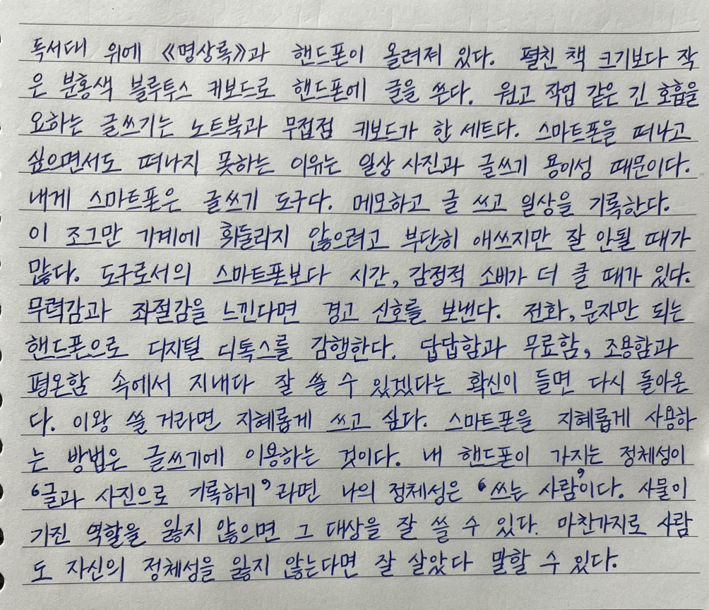내 핸드폰이 가지는 정체성이 ‘글과 사진으로 기록하기’라면 나의 정체성은 ‘쓰는 사람’이다.