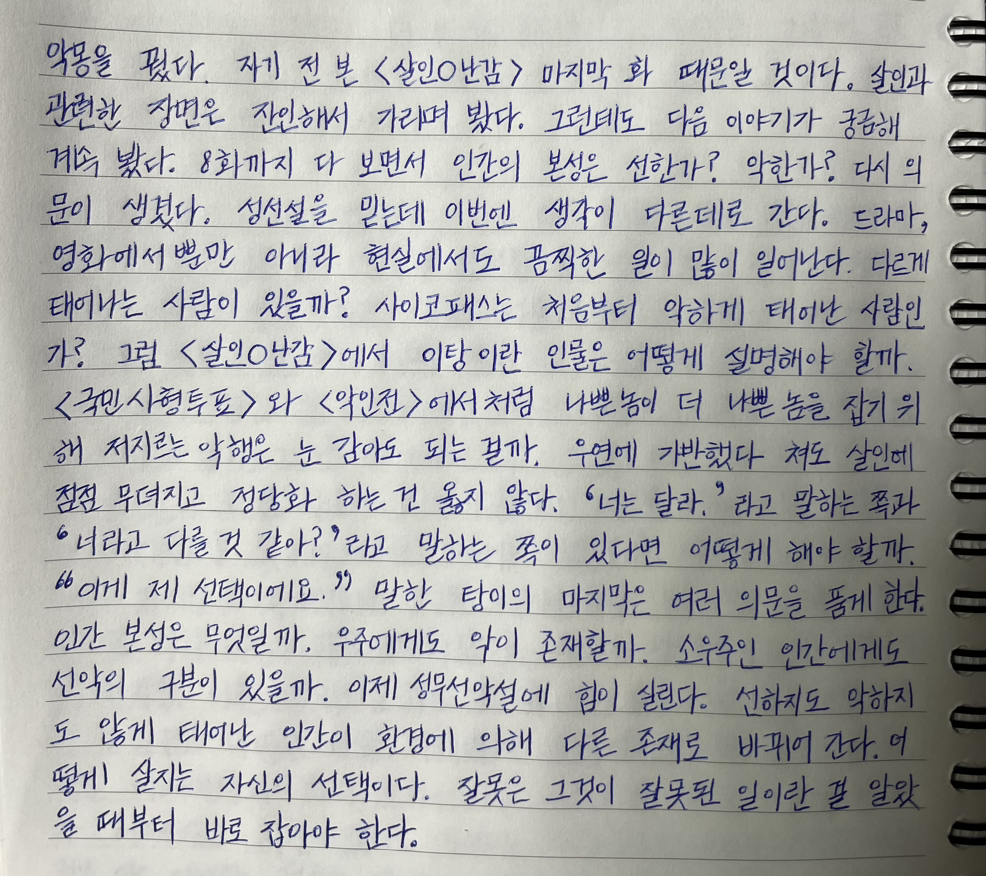 자기 전 본 <살인0난감> 마지막 화 때문일 것이다.
