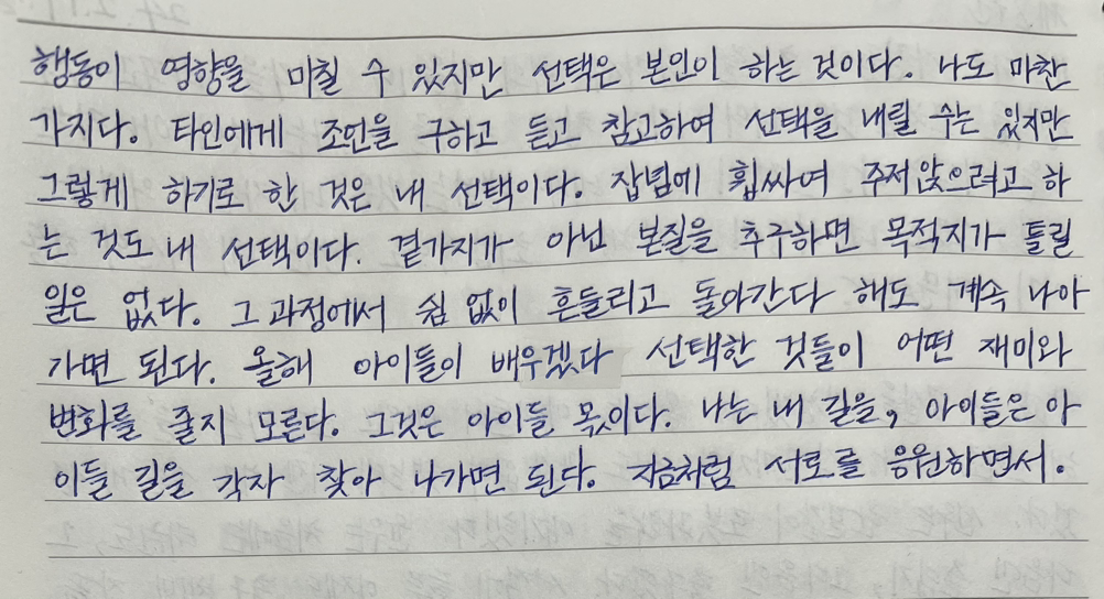 나는 내 길을, 아이들은 아이들 길을 각자 찾아 나가면 된다.