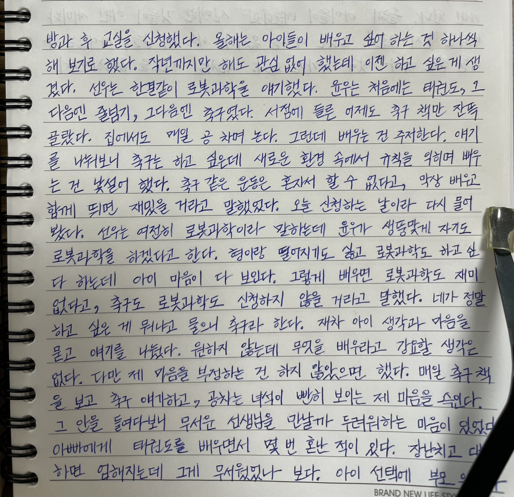 그렇게 배우면 로봇과학도 재미없다고, 축구도 로봇과학도 신청하지 않을 거라고 말했다.