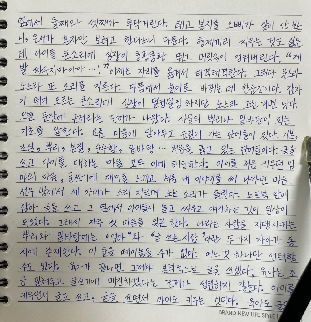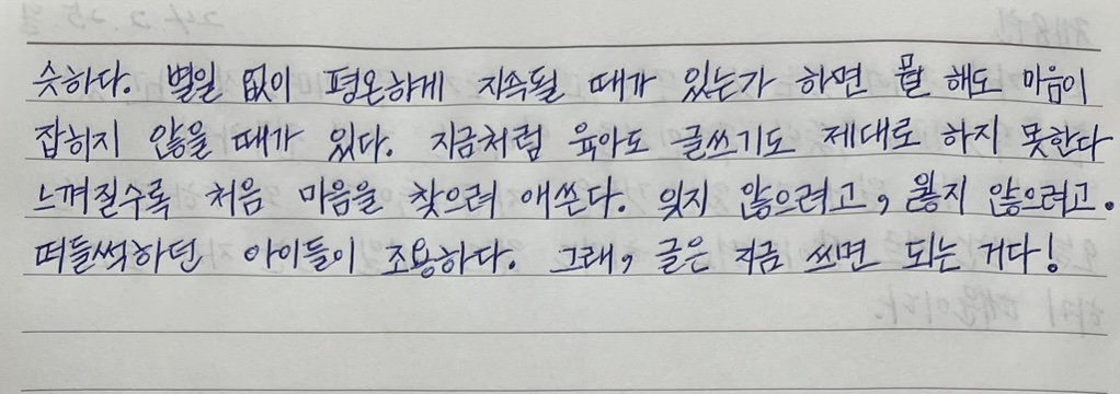 지금처럼 육아도 글쓰기도 제대로 하지 못한다 느껴질수록 처음 마음을 찾으려 애쓴다.