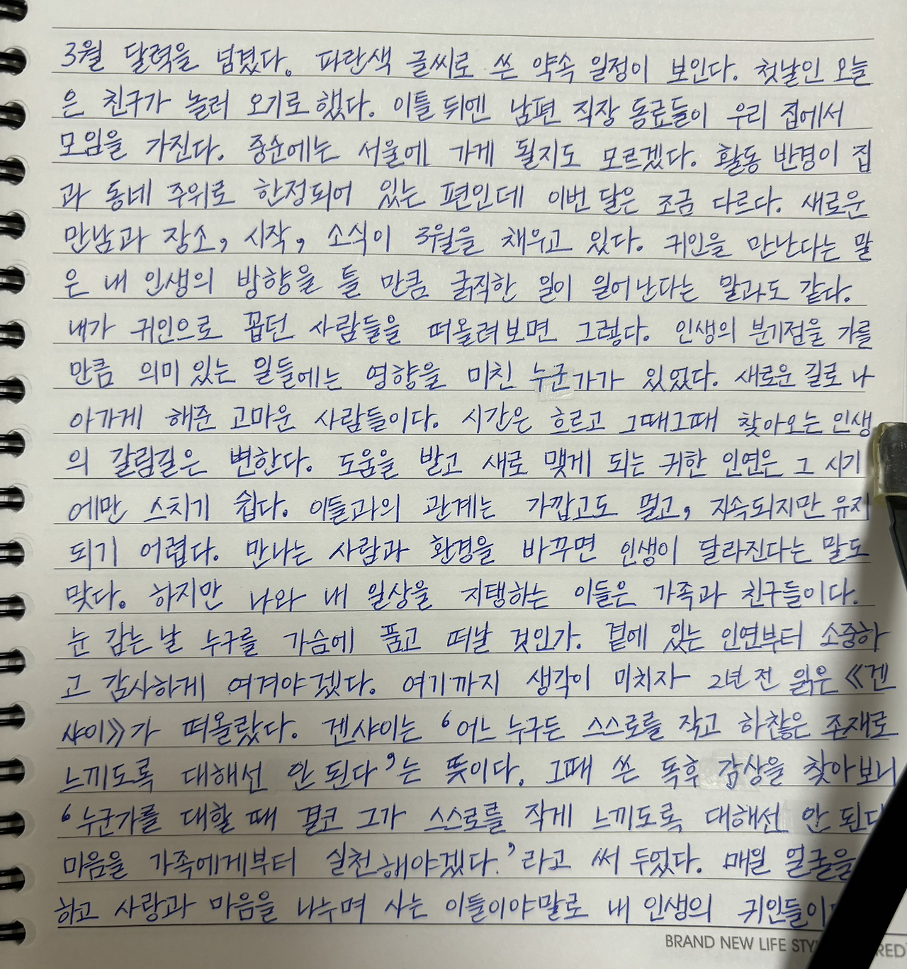 파란색 글씨로 쓴 약속 일정이 보인다.