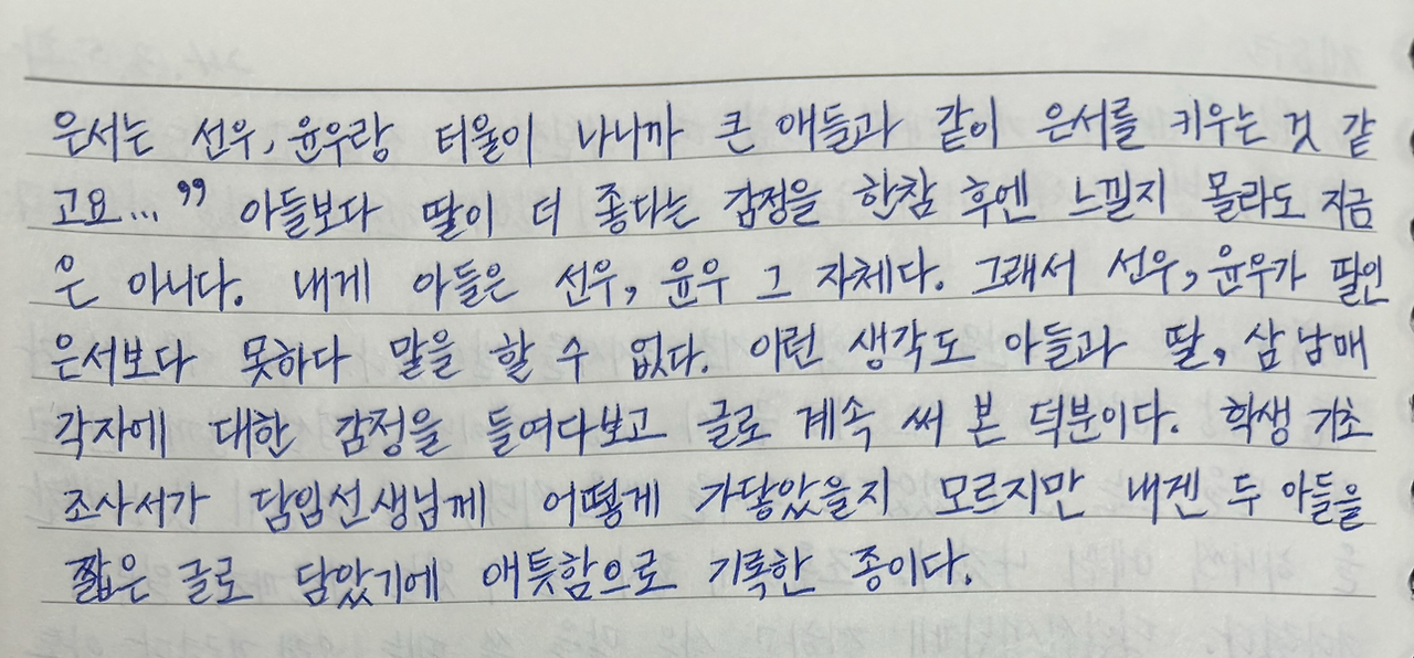 이러한 생각도 아들과 딸, 삼 남매 각자에 대한 감정을 들여다보고 글로 계속 써 본 덕분이다.