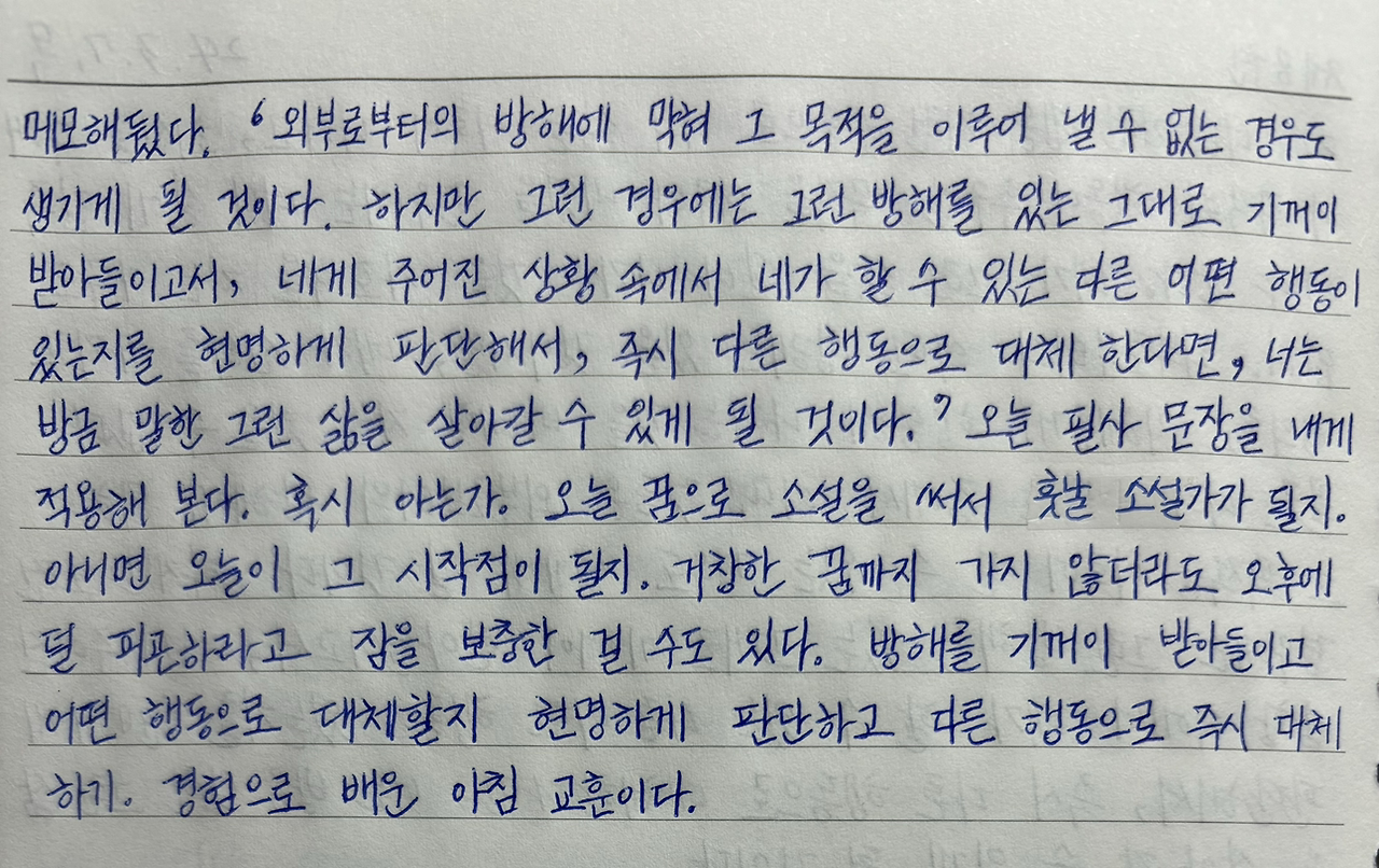 오늘 필사 문장을 내게 적용해 본다.