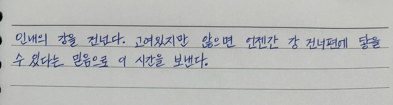 책과 글쓰기라는 노를 가지고 인내의 강을 건넌다.