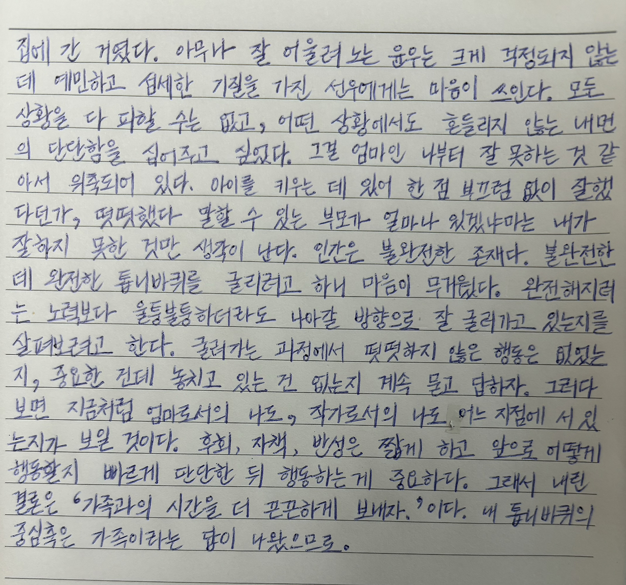 그래서 내린 결론은 '가족과의 시간을 더 끈끈하게 보내자.'이다.