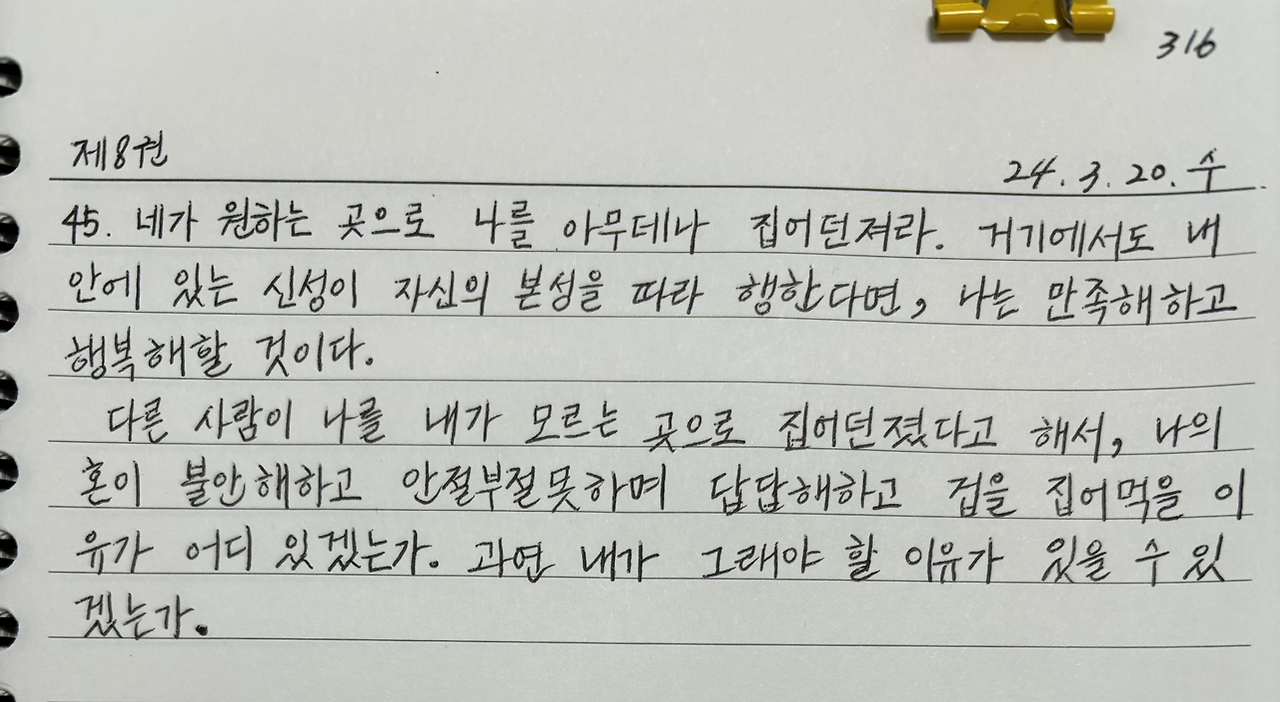 '내 안에 있는 신성이 자신의 본성을 따라 행한다면, 나는 만족해하고 행복해할 것이다.'라는 말처럼 말이다.