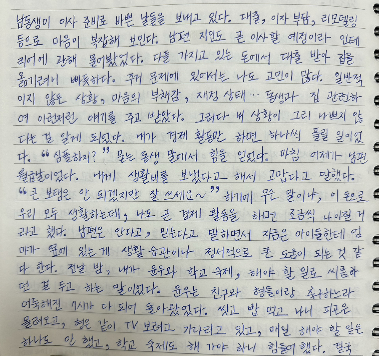 일반적이지 않은 상황, 마음의 부채감, 재정 상태… 동생과 집 관련하여 이런저런 얘기를 주고받았다.