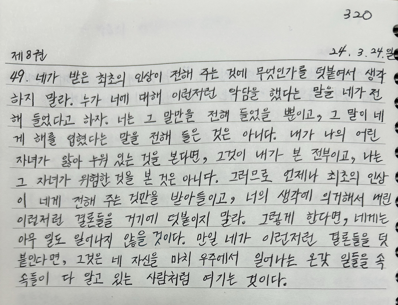 네가 받은 최초의 인상이 전해 주는 것에 무엇인가를 덧붙여서 생각하지 말라.