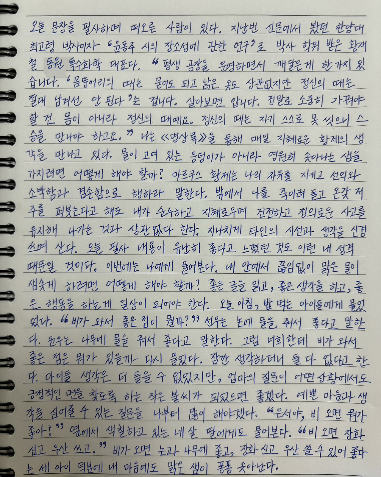 좋은 글을 읽고, 좋은 생각을 하고, 좋은 행동을 하는 게 일상이 되어야 한다.