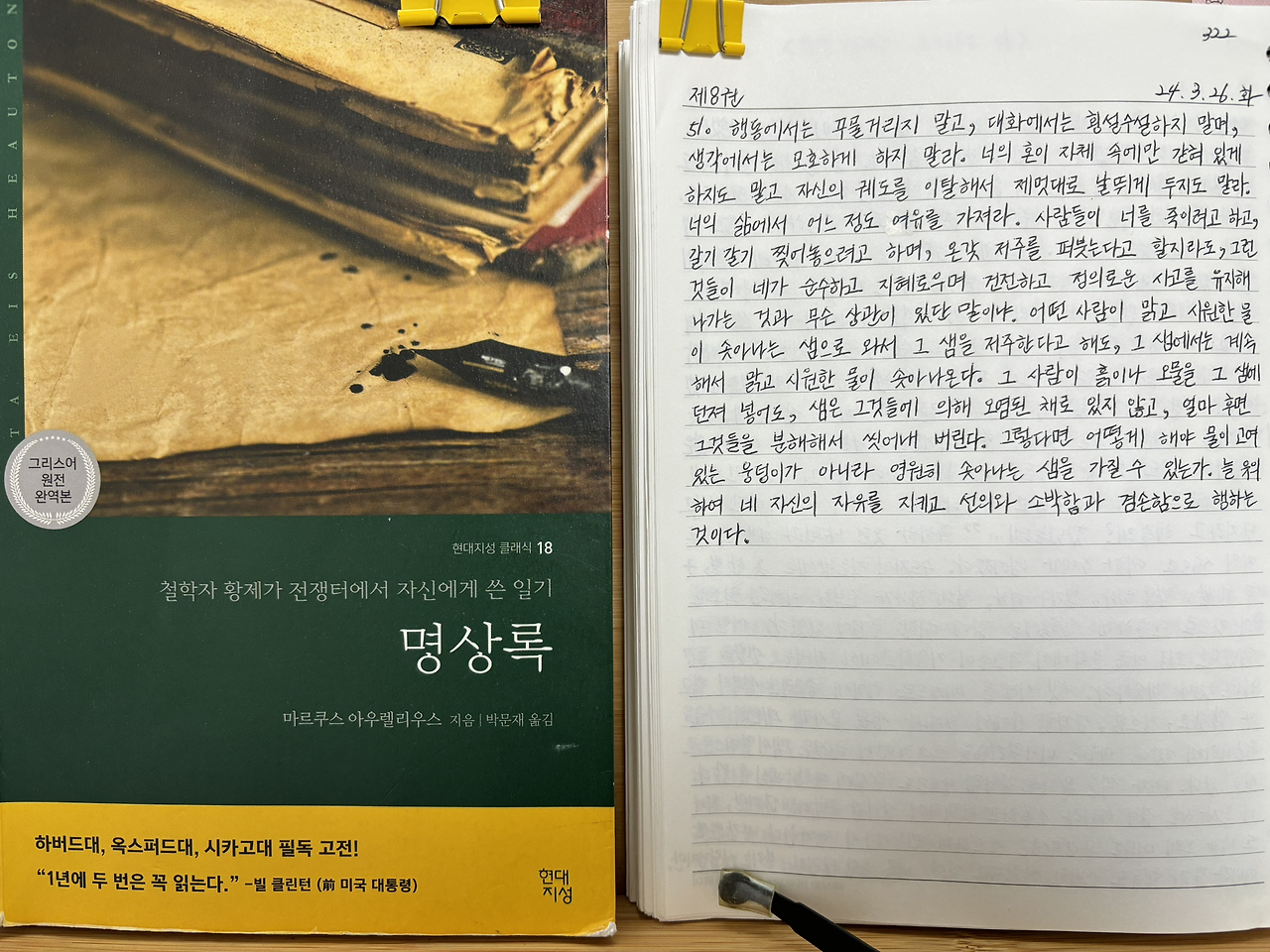 나는 《명상록》을 통해 매일 지혜로운 황제의 생각을 만나고 있다.