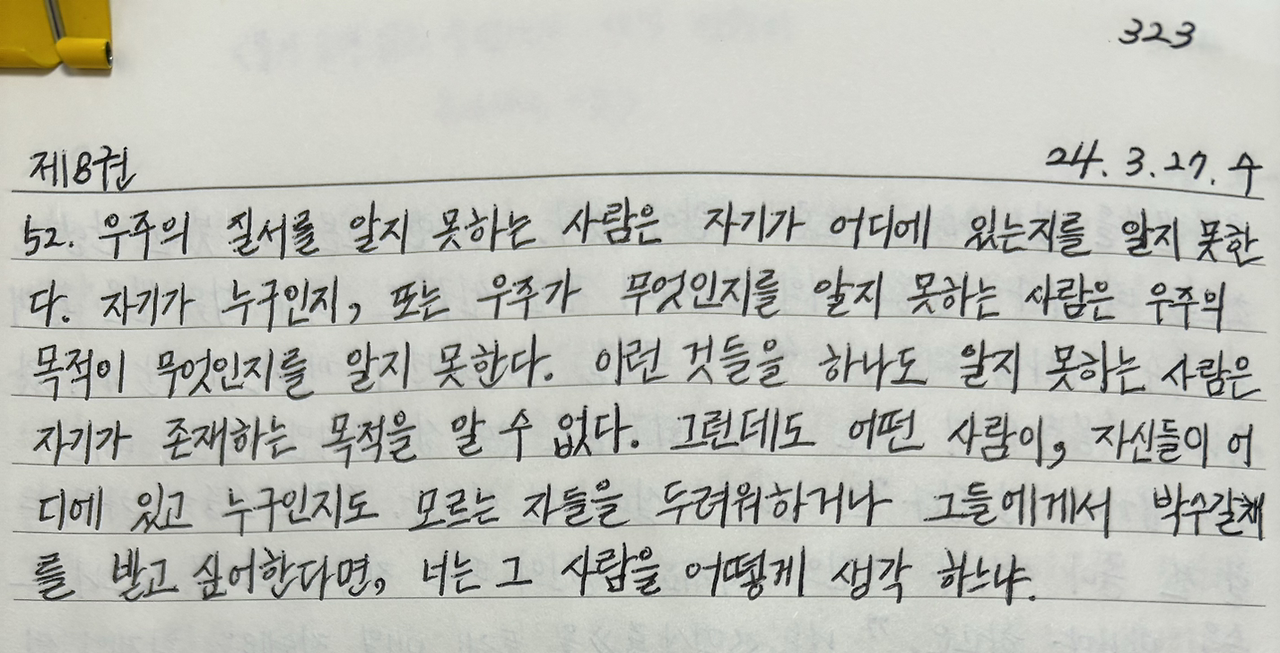 -《명상록》, 마르쿠스 아우렐리우스_제8권 52 중에서