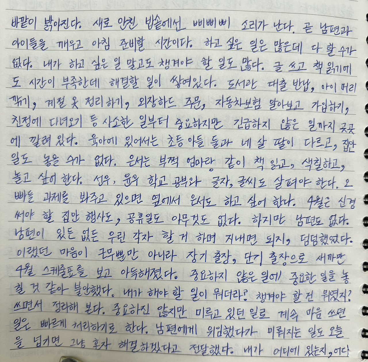 도서관 대출 반납, 아이 머리 깎기, 계절 옷 정리하기, 외장하드 주문, 자동차보험 알아보고 가입하기, 친정에 다녀오기 등 사소한 일부터 중요하지만 긴급하지 않은 일까지 곳곳에 깔려 있다.