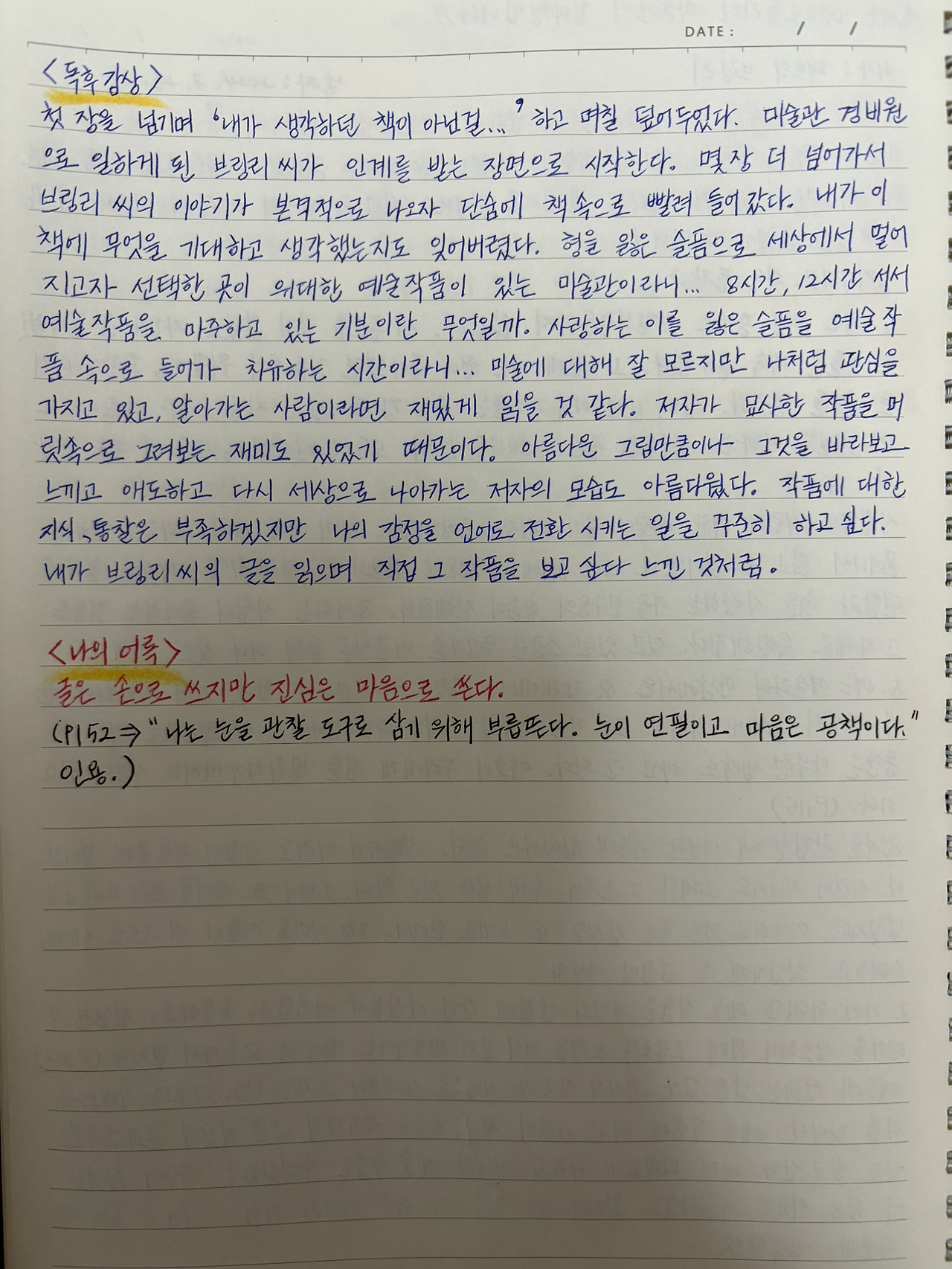 작품에 대한 지식, 통찰은 부족하지만 나의 감정을 언어로 전환시키는 일을 꾸준히 하고 싶다.