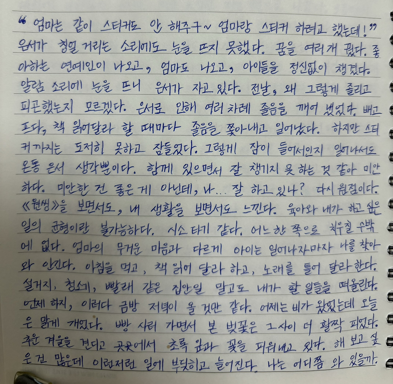 설거지, 청소기, 빨래 같은 집안일 말고도 내가 할 일들을 떠올린다.