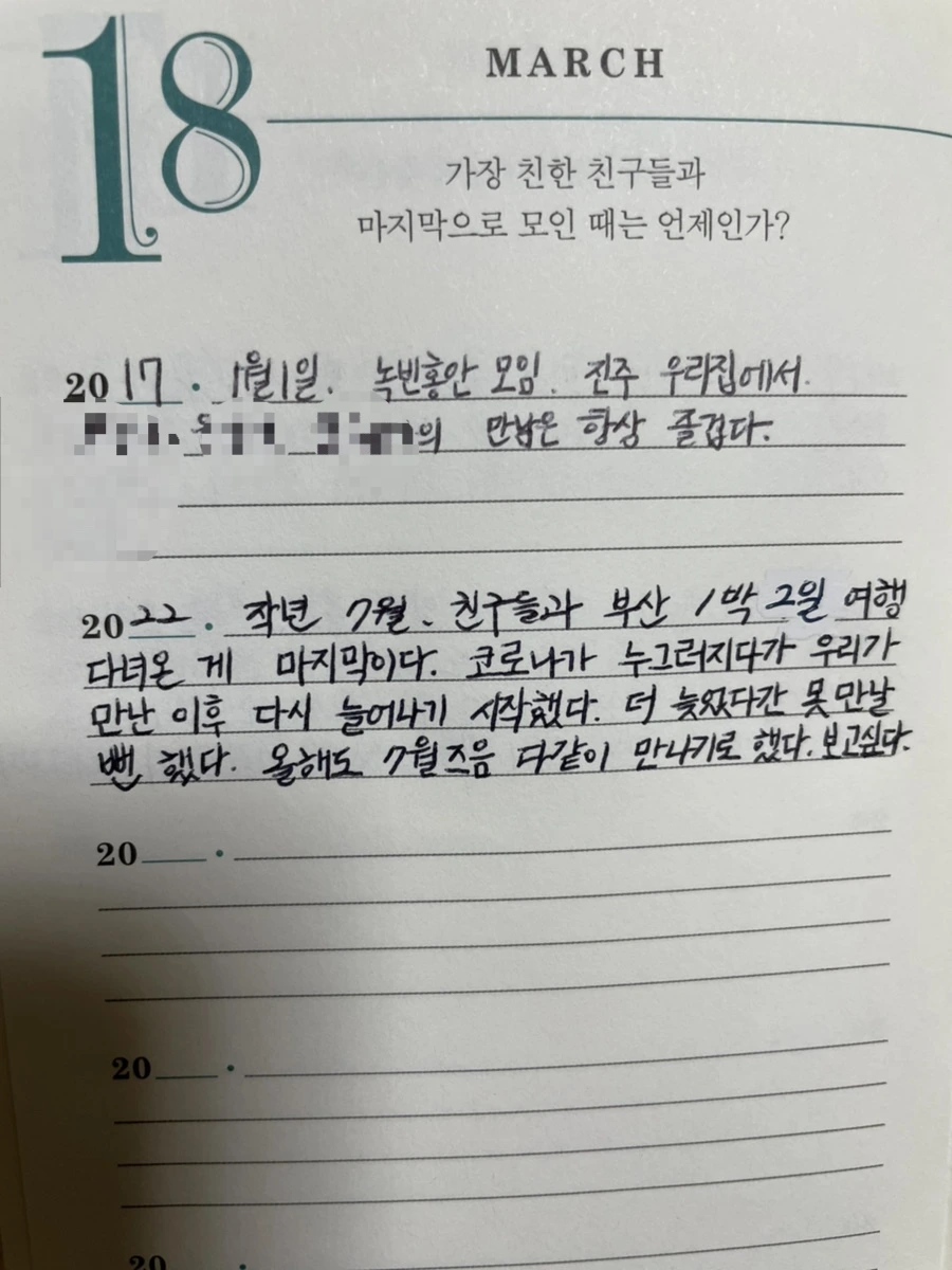 마스크 없이 만났던 마지막 모임.