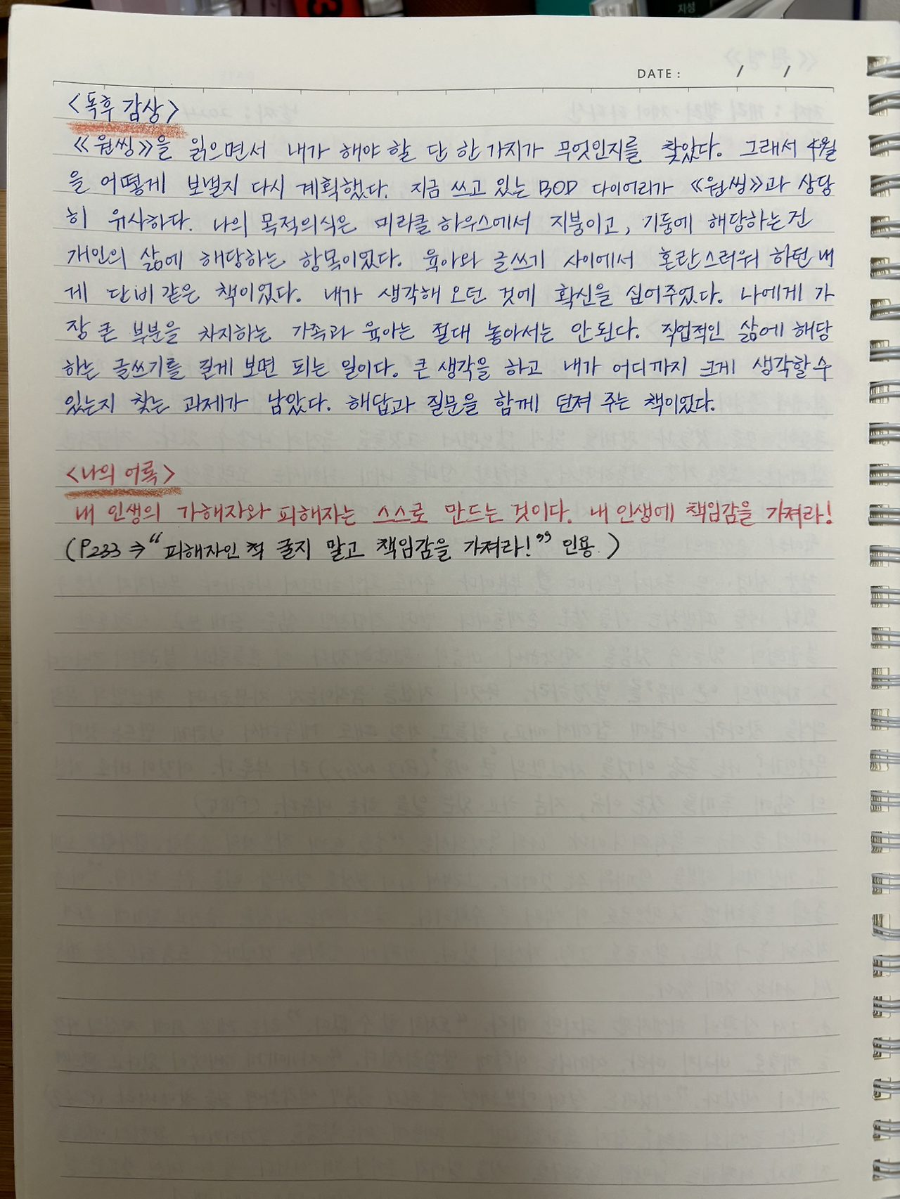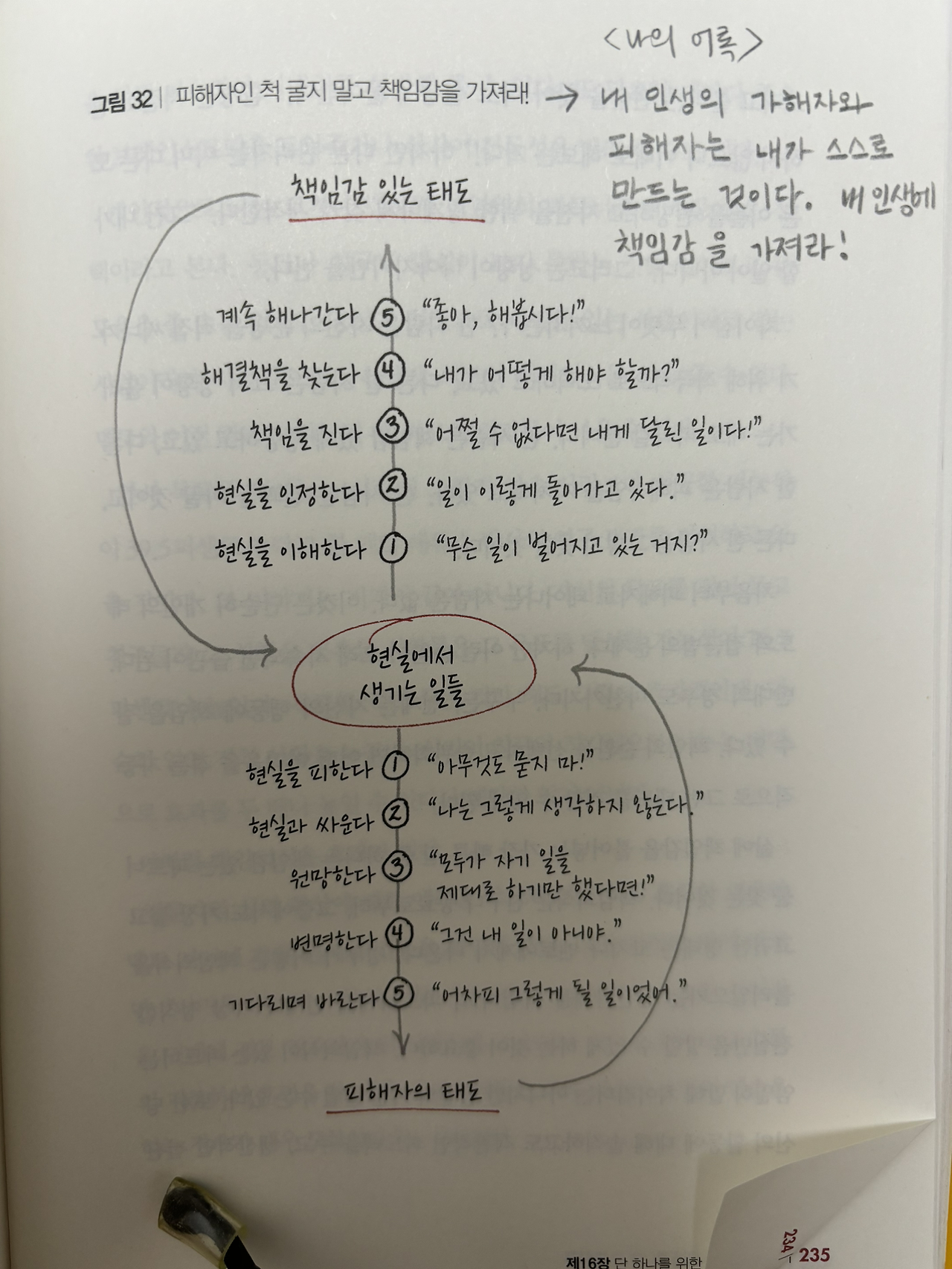 "내 인생의 가해자와 피해자는 스스로 만드는 것이다. 내 인생에 책임감을 가져라!"
