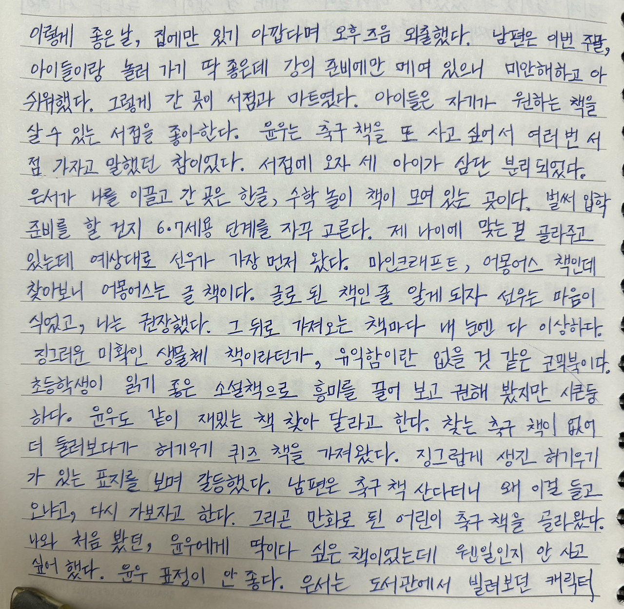 윤우는 축구 책을 또 사고 싶어서 여러 번 서점 가자고 말했던 참이었다.