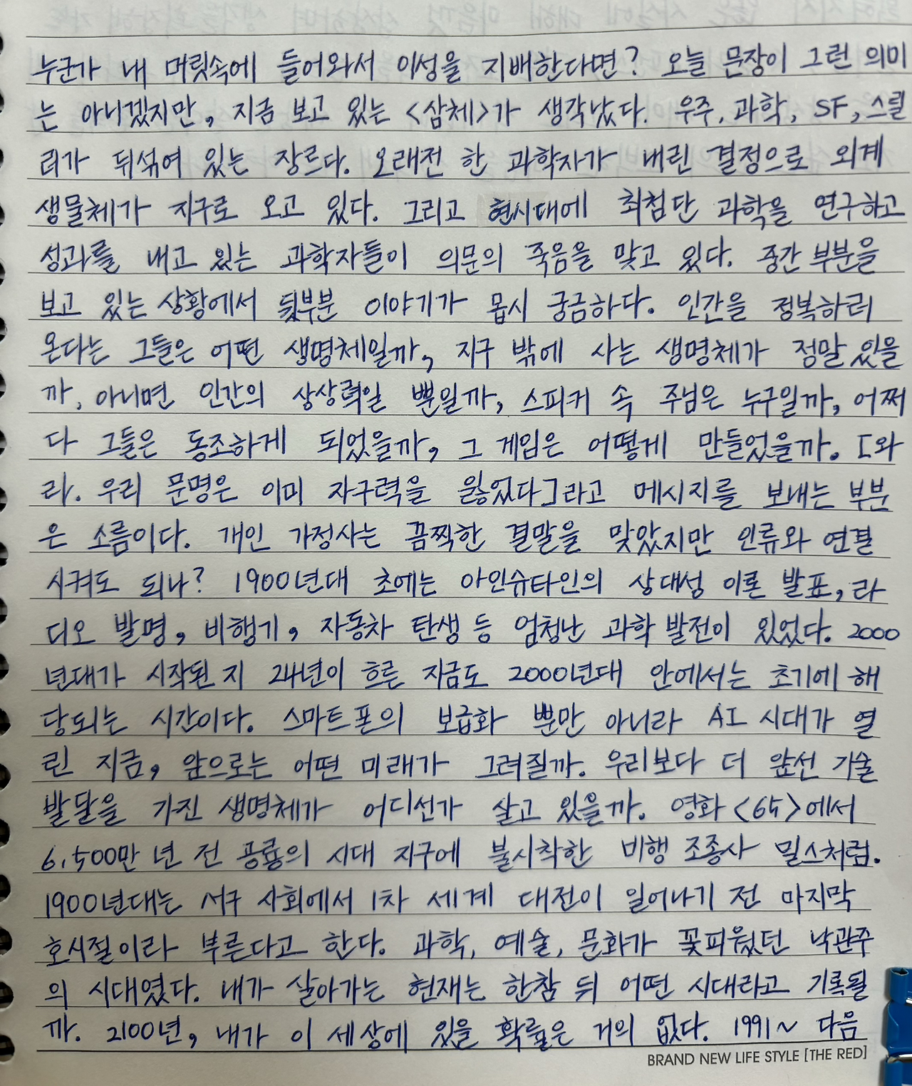 오늘 문장이 그런 의미는 아니겠지만, 지금 보고 있는 <삼체>가 생각났다.