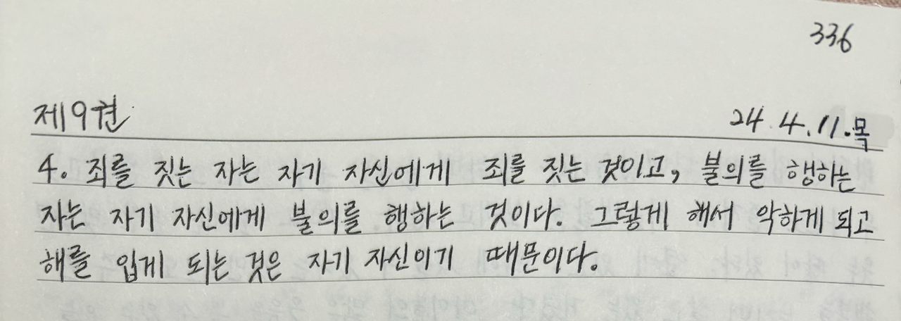 타인에게 죄를 짓지 않는 것이 내게도 죄를 짓지 않는 길이다.