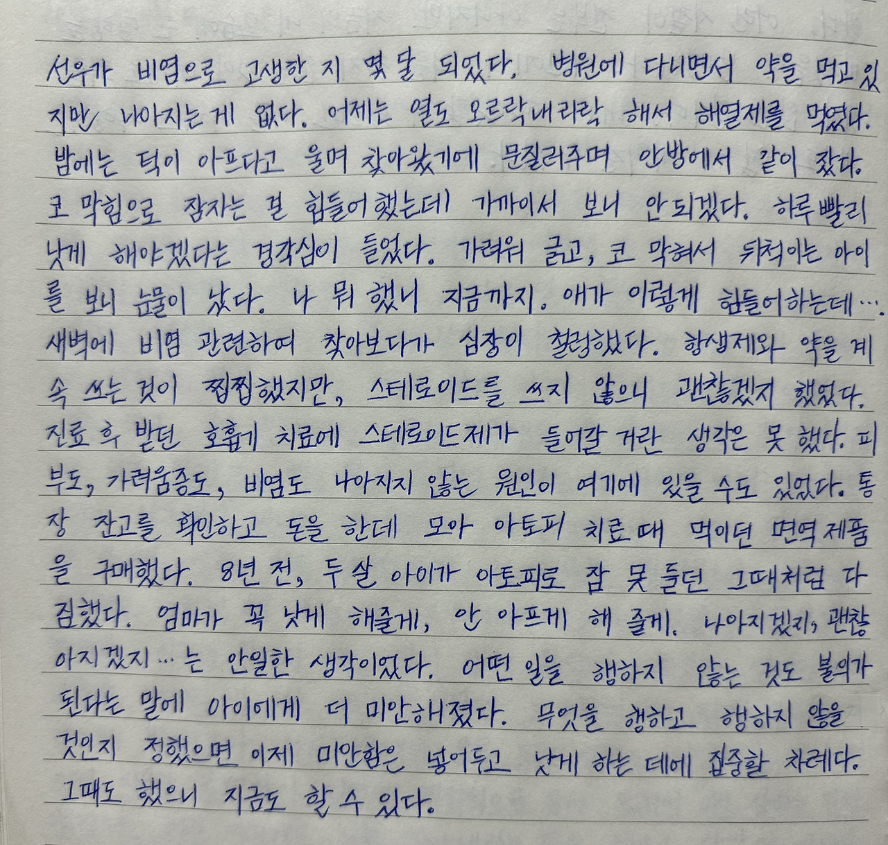 가려워 긁고, 코 막혀서 뒤척이는 아이를 보니 눈물이 났다.