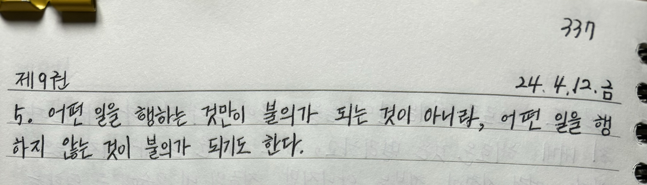 어떤 일을 행하는 것만이 불의가 되는 것이 아니라, 어떤 일을 행하지 않는 것이 불의가 되기도 한다.