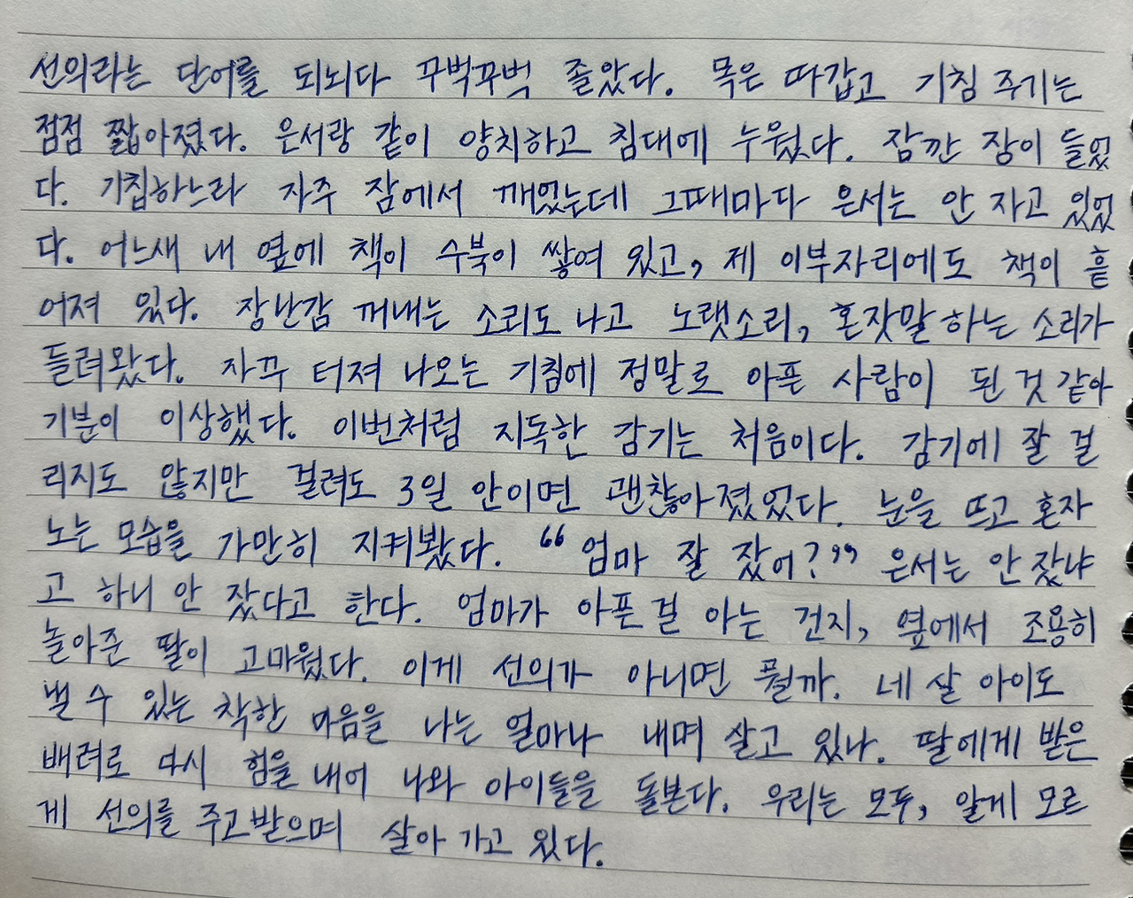 딸에게 받은 배려로 다시 힘을 내어 나와 아이들을 돌본다.