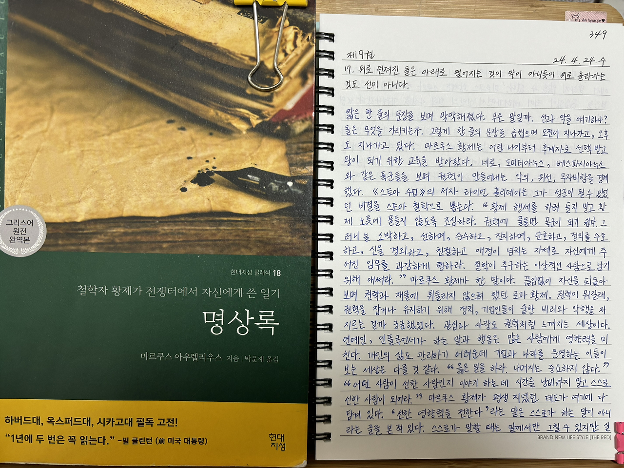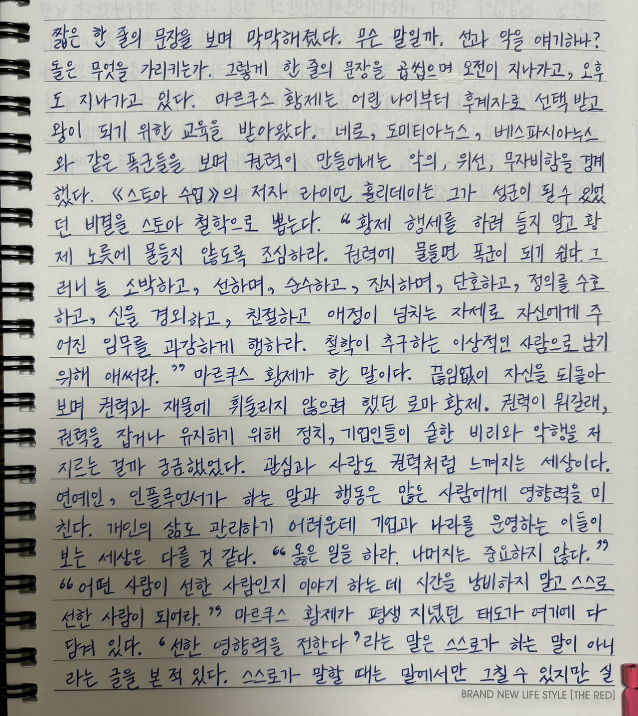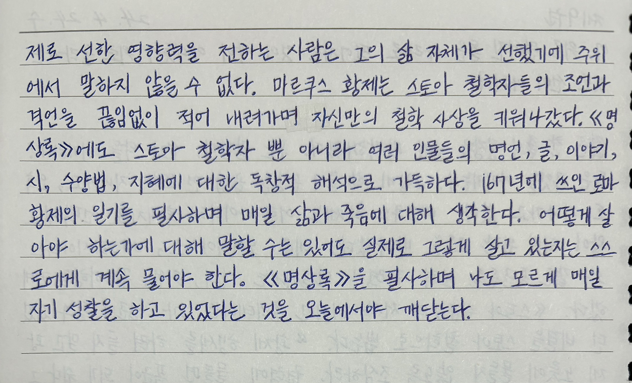 《명상록》을 필사하며 나도 모르게 매일 자기 성찰을 하고 있었다는 것을 오늘에서야 깨닫는다.