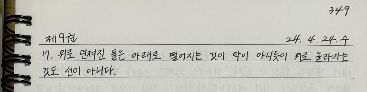 위로 던져진 돌은 아래로 떨어지는 것이 악이 아니듯이 위로 올라가는 것도 선이 아니다.