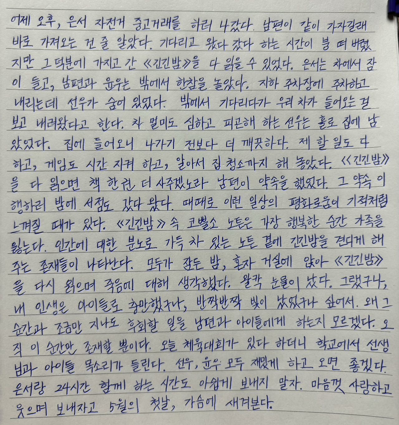 《긴긴밤》을 다 읽으면 책 한 권 더 사주겠노라 남편이 약속을 했었다.