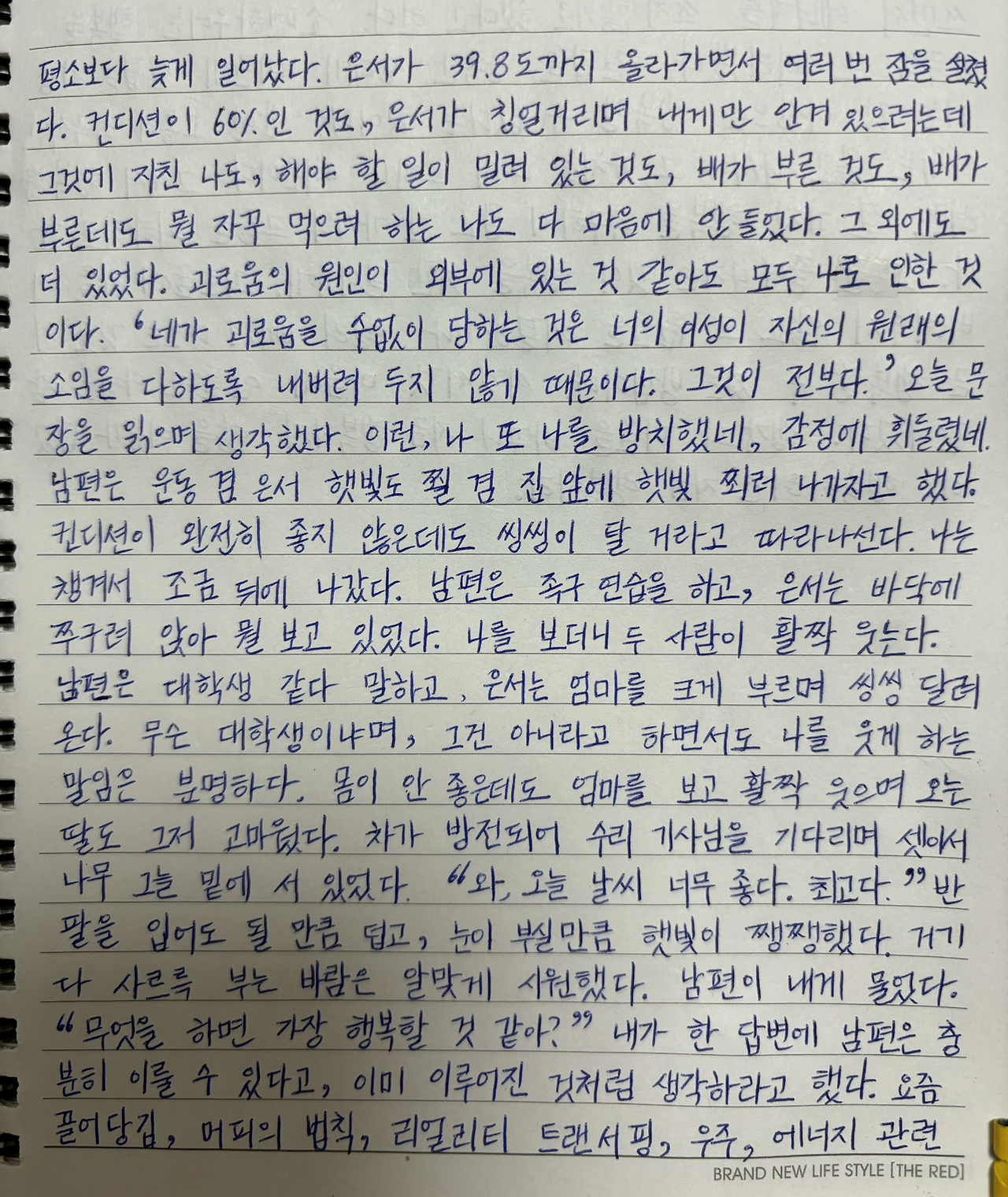 컨디션이 60%인 것도, 은서가 칭얼거리며 내게만 안겨 있으려는데 그것에 지친 나도, 해야 할 일이 밀려 있는 것도, 배가 부른 것도, 배가 부른데도 뭘 자꾸 먹으려 하는 나도 다 마음에 안 들었다.