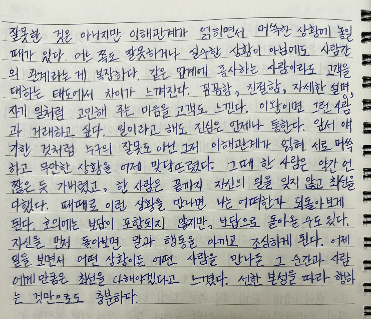 어제 일을 보면서 어떤 상황이든 어떤 사람을 만나든 그 순간과 사람에게만큼은 최선을 다해야겠다고 느꼈다.