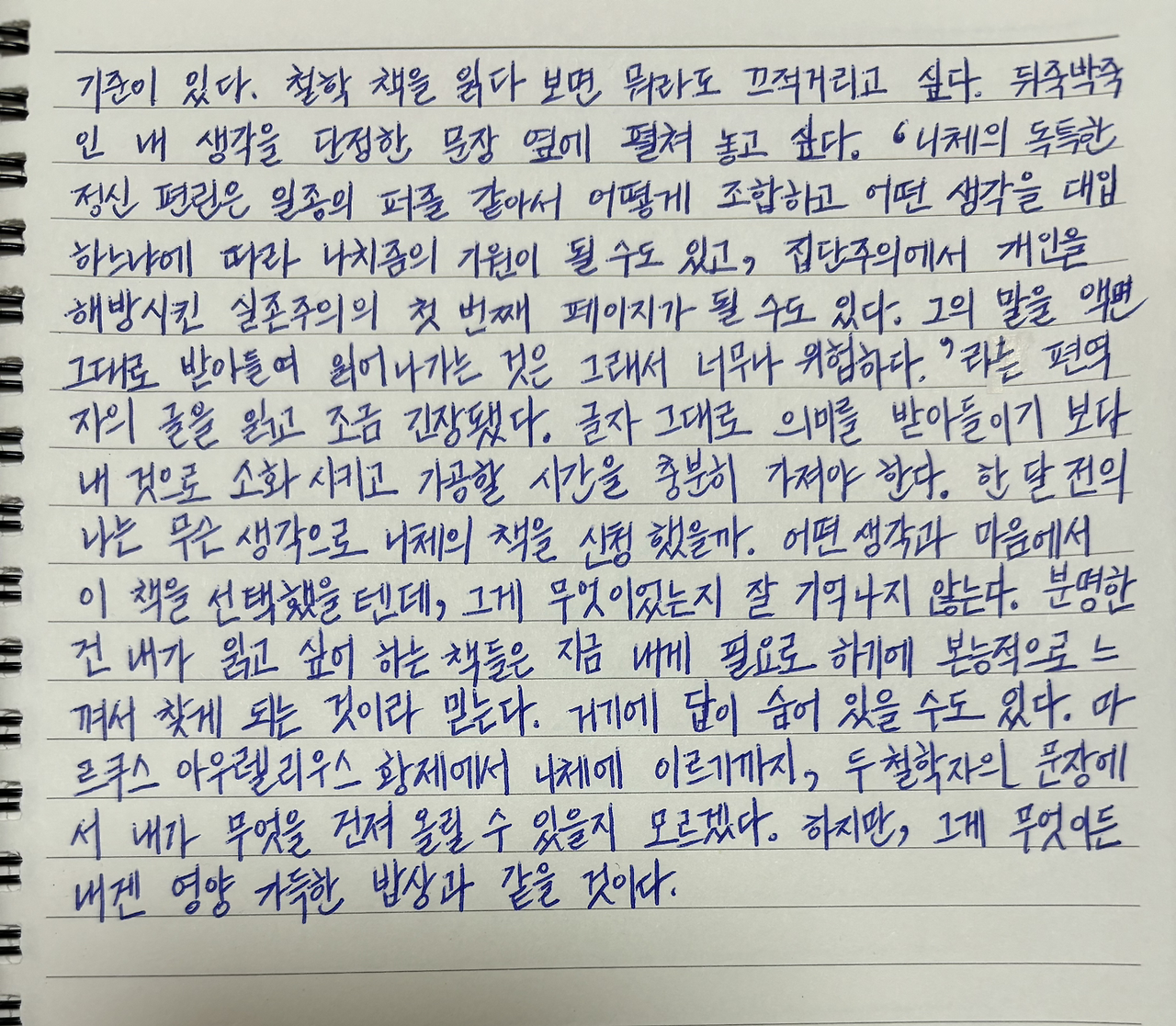 마르쿠스 아우렐리우스 황제에서 니체에 이르기까지, 두 철학자의 문장에서 내가 무엇을 건져 올릴 수 있을지 모르겠다.