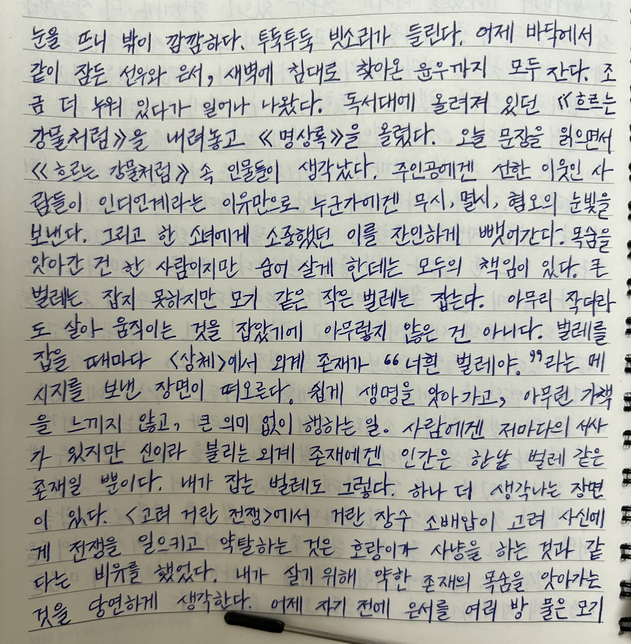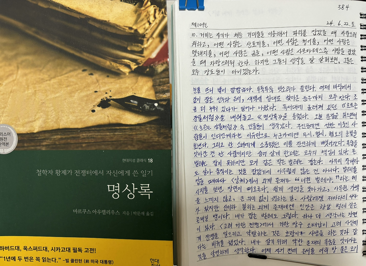 독서대에 올려져 있던 《흐르는 강물처럼》을 내려놓고 《명상록》을 올렸다.
