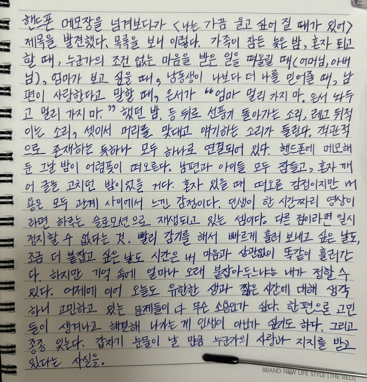 핸드폰 메모장을 넘겨보다가 <나는 가끔 울고 싶어질 때가 있어> 제목을 발견했다.