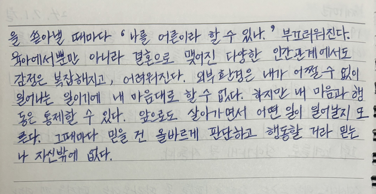 미혼일 때는 법을 어기지 않고, 이타적인 마음을 가지고 있고, 도움이 되는 존재가 되고 싶어 한다는 것만으로도 나름 성숙한 어른이라 자부했었다.
