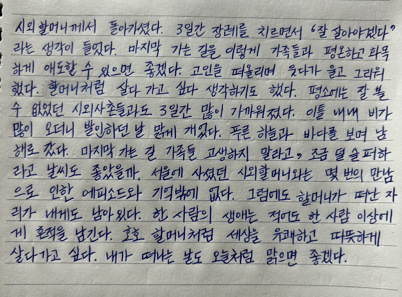 그럼에도 할머니가 떠난 자리가 내게도 남아있다.
