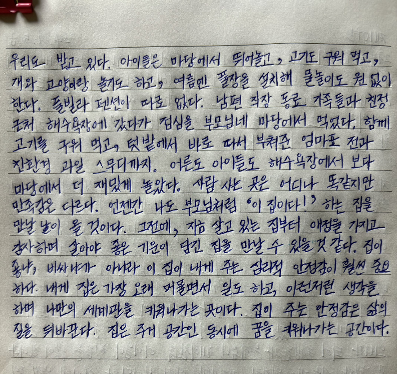 그전에, 지금 살고 있는 집부터 애정을 가지고 감사하며 살아야 좋은 기운이 담긴 집을 만날 수 있을 것 같다.