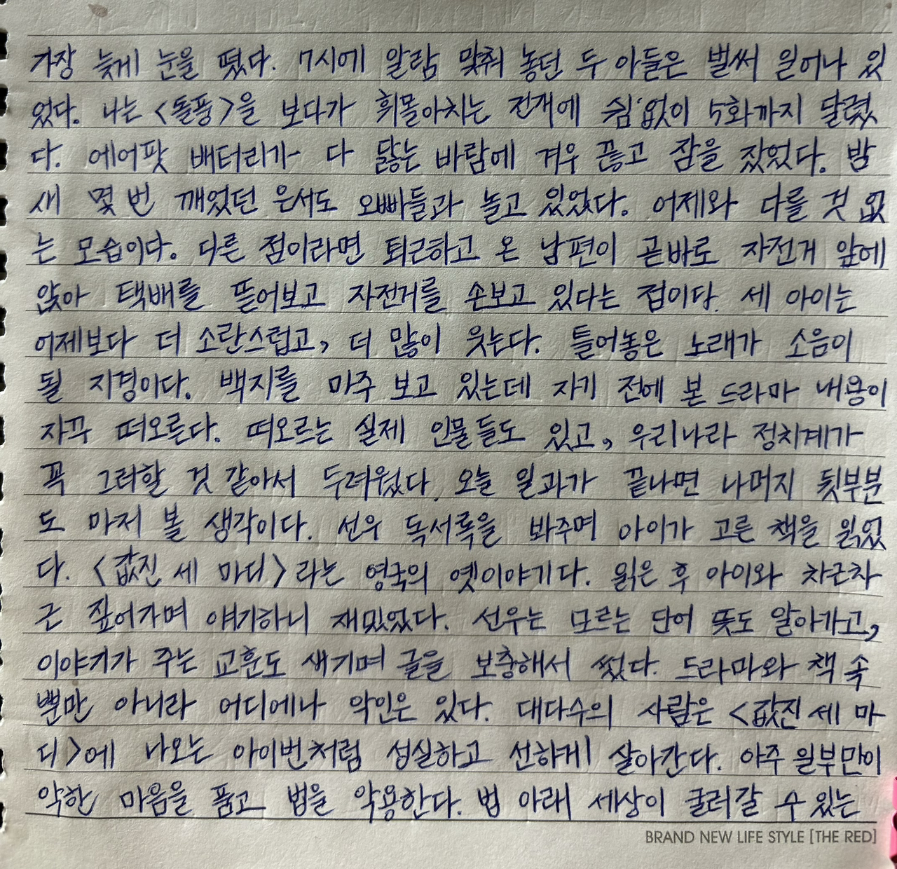 백지를 마주 보고 있는데 자기 전에 본 드라마 내용이 자꾸 떠오른다.