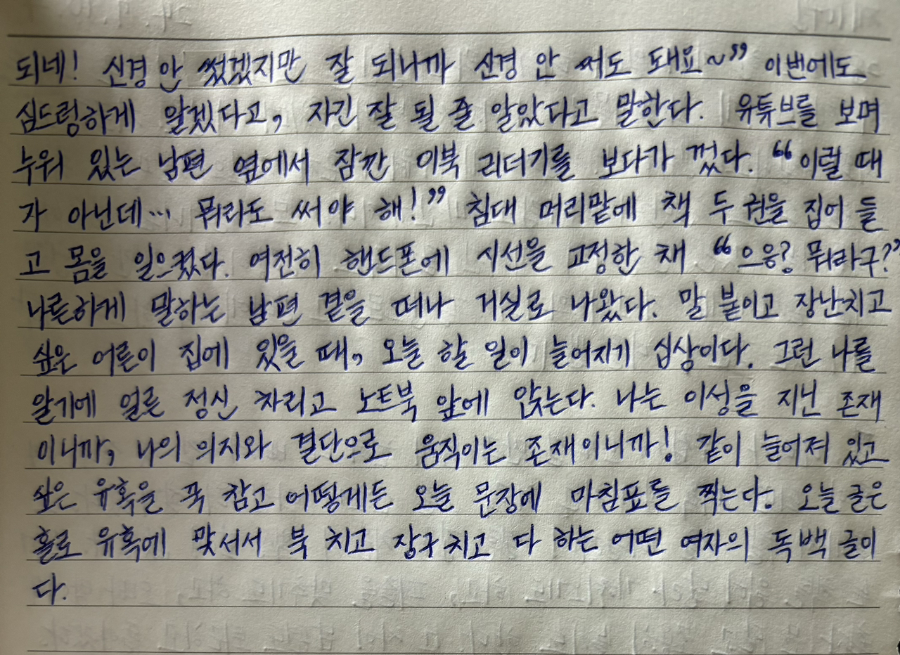 다시 거실로 나와 한두 줄 썼다 지웠다 하다가 일어섰다.