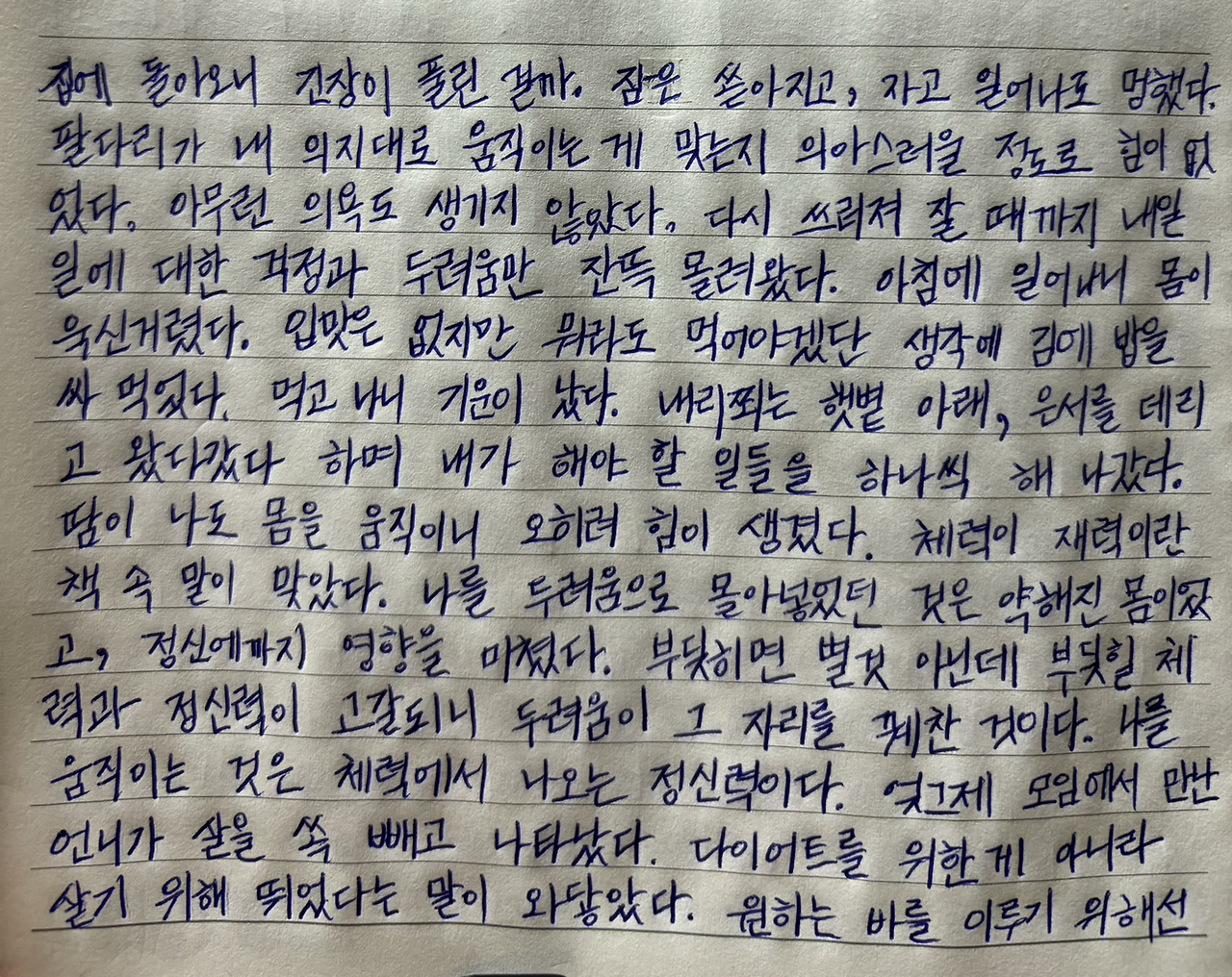 팔다리가 내 의지대로 움직이는 게 맞는지 의아스러울 정도로 힘이 없었다.