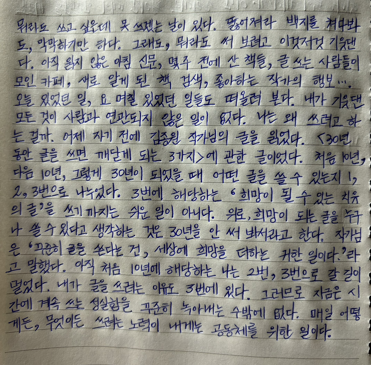 매일 어떻게든, 무엇이든 쓰려는 노력이 내게는 공동체를 위한 일이다.