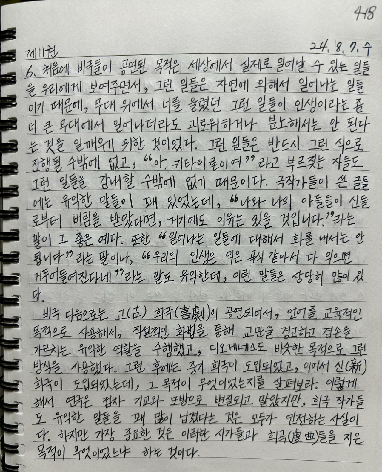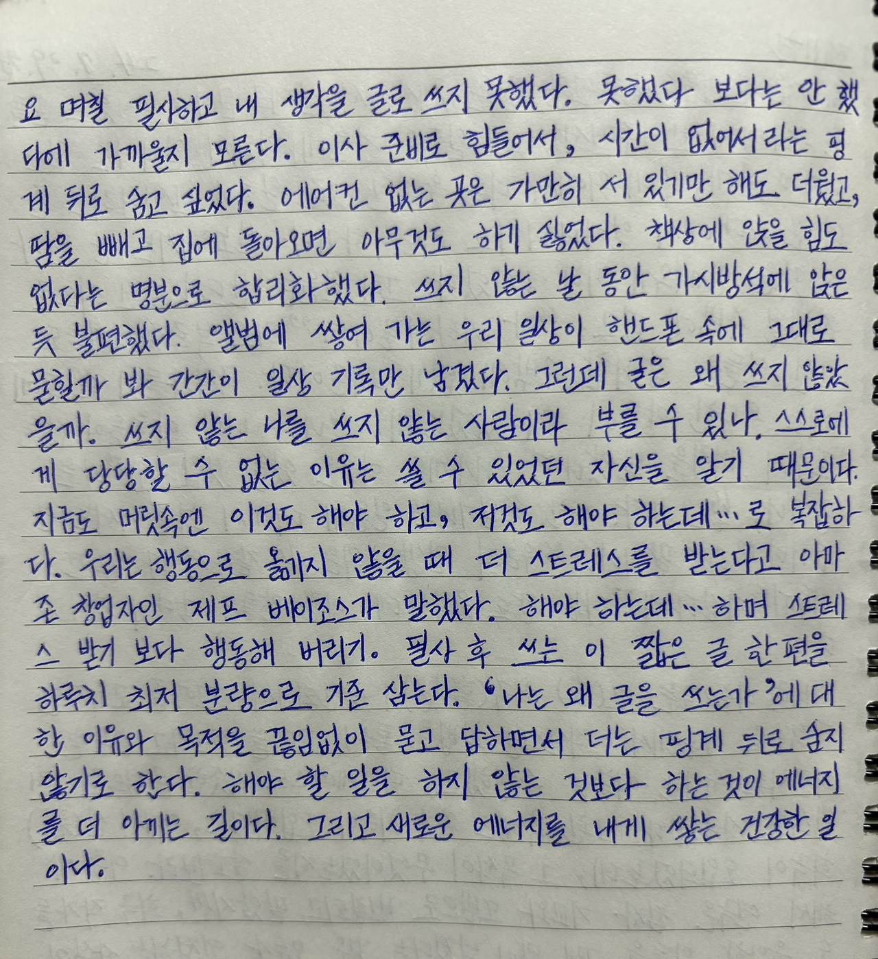 요 며칠 필사하고 내 생각을 글로 쓰지 못했다.
