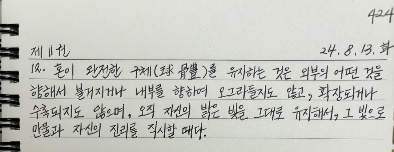 혼이 완전한 구체를 유지하는 것은 외부의 어떤 것을 향해서 불거지거나 내부를 향하여 오그라들지도 않고, 확장되거나 수축되지도 않으며, 오직 자신의 밝은 빛을 그대로 유지해서, 그 빛으로 만물과 자신의 진리를 직시할 때다.
