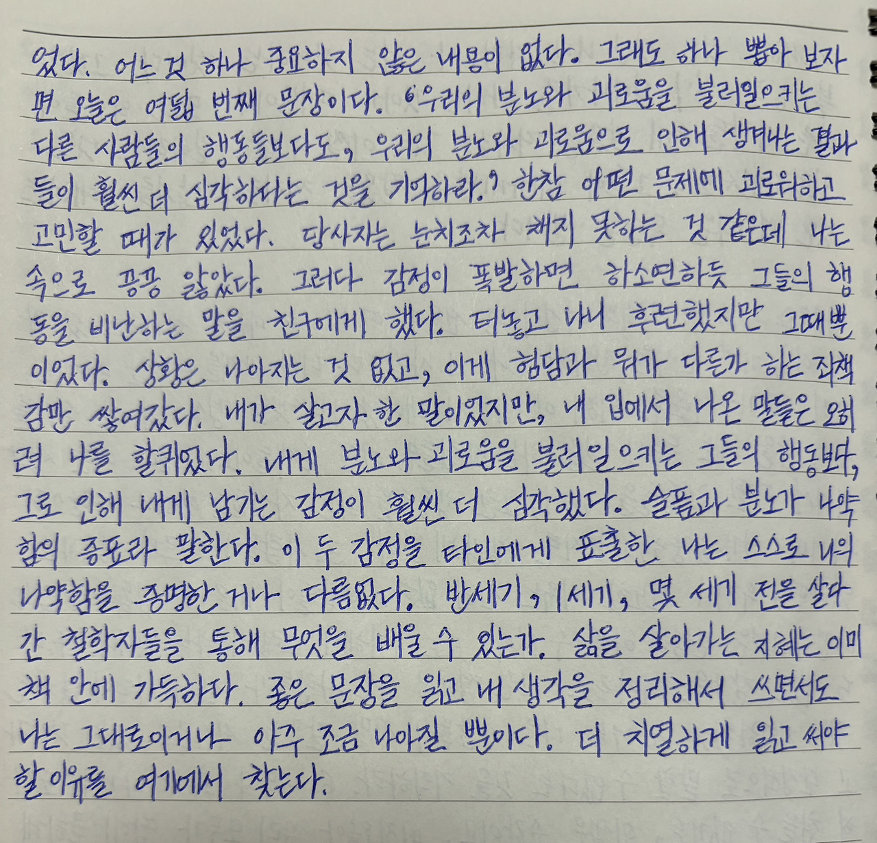 좋은 문장을 읽고 내 생각을 정리해서 쓰면서도 나는 그대로이거나 아주 조금 나아질 뿐이다.