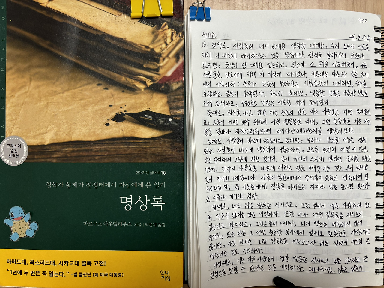 아홉 가지 원칙은 《명상록》을 필사해 오면서 여러 번 언급된 내용이었다.