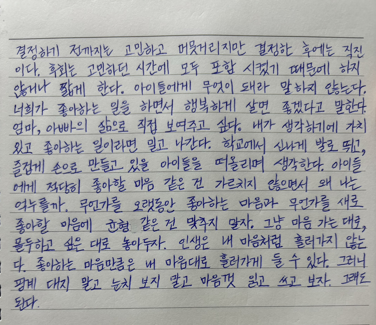 나를 움직이는 동력은 내 안에서 나오고, ‘좋아하는 마음’이 연료가 되어 나를 움직인다는 사실을 안다.