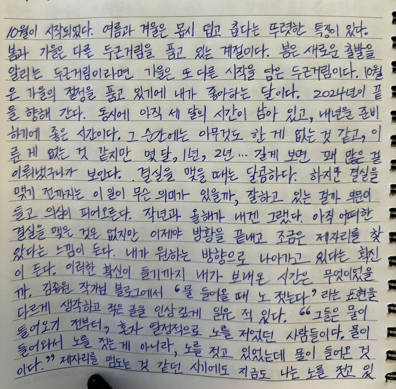 김종원 작가님 블로그에서 '물 들어올 때 노 젓는다'라는 표현을 다르게 생각하고 적은 글을 인상 깊게 읽은 적 있다.