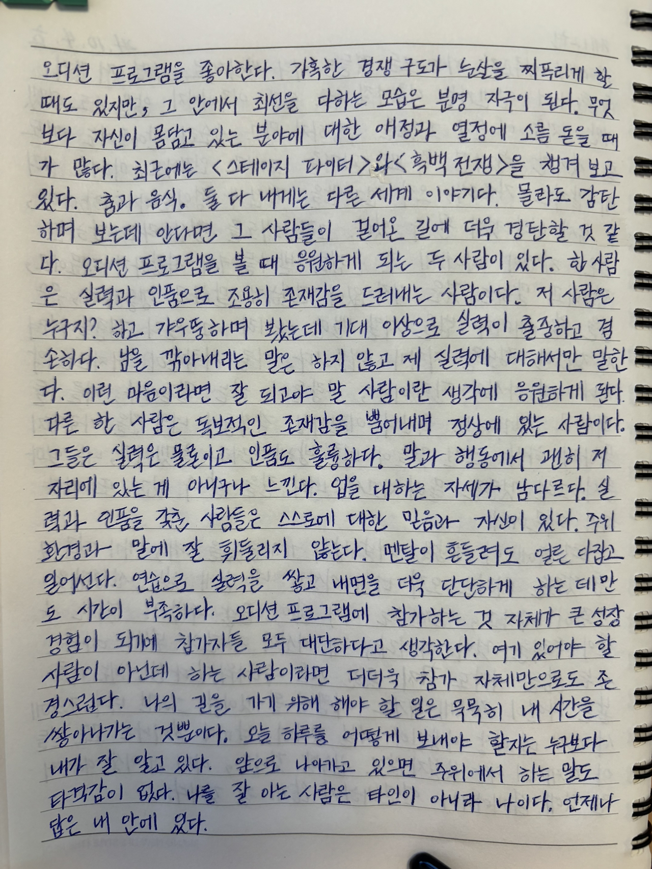 오디션 프로그램에 참가하는 것 자체가 큰 성장 경험이 되기에 참가자들 모두 대단하다고 생각한다.